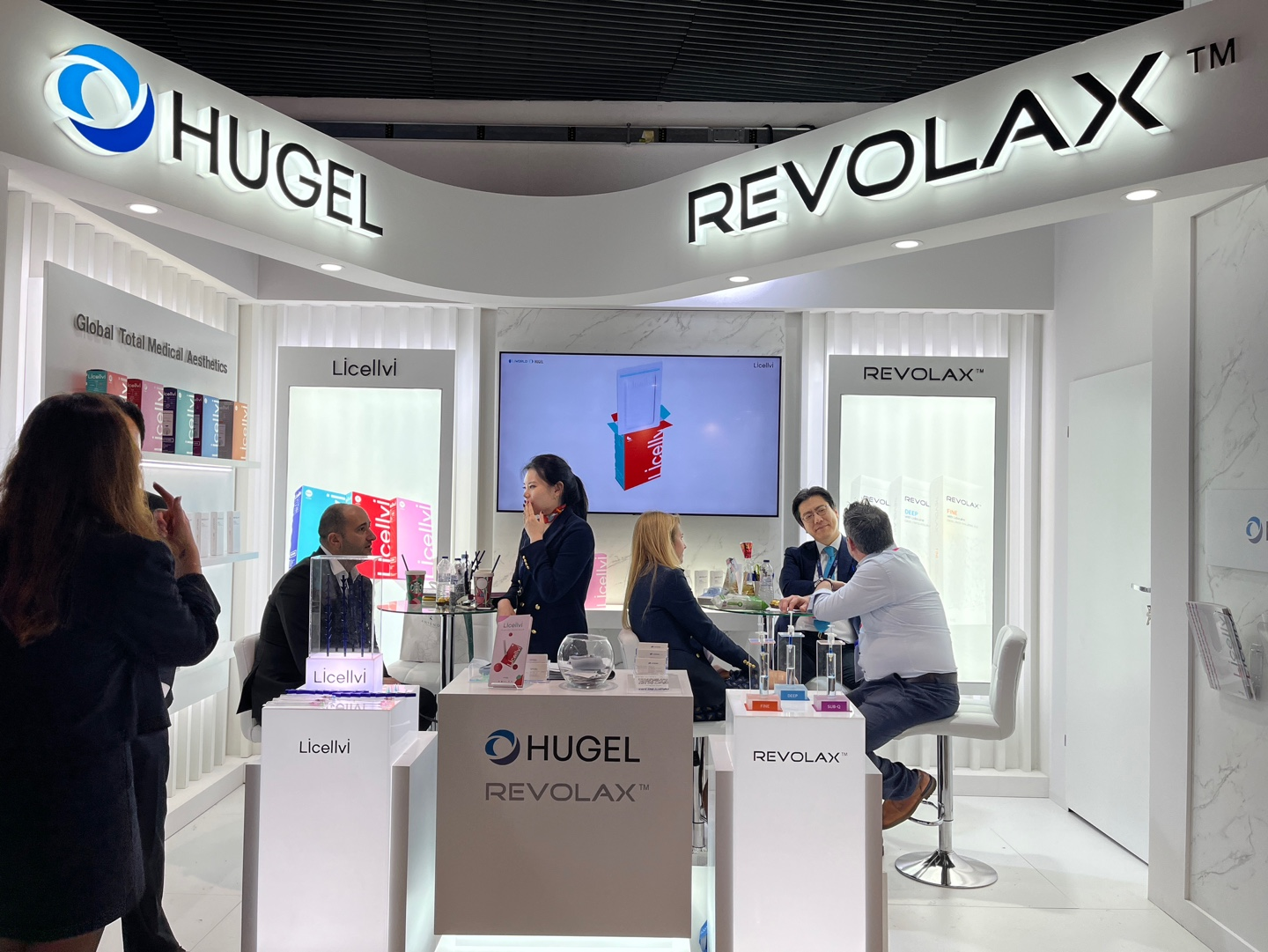 IMCAS on-site booth introducing Hugel products such as HA filler and sutures
